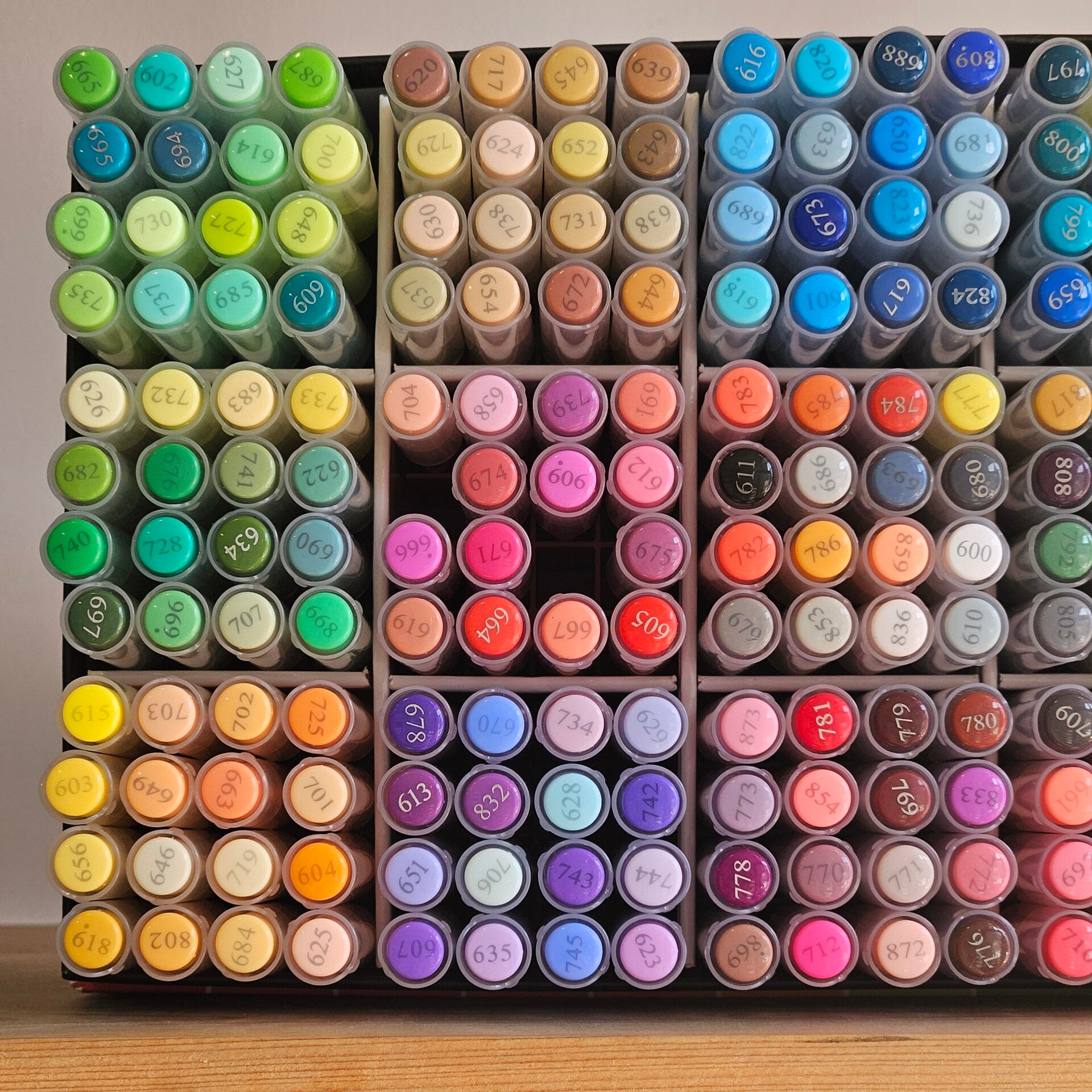 De markers moeten na het activeren het liefst horizontaal opgeborgen worden. Met deze inserts blijven de markers op hun plek liggen wanneer je er 1 tussenuit haalt om te kleuren.